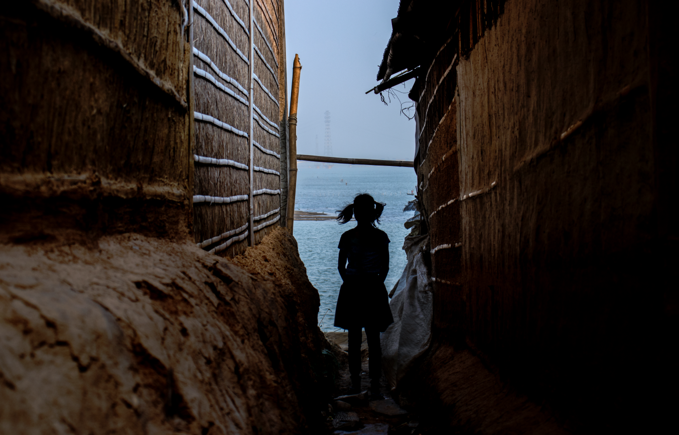 Infinite: This photograph is of 10-year-old Nikita Rajbongshi, who belongs to a fisherman family who resides at the bank of river Brahmaputra in Tezpur, Assam. She studies in Kolibari School in class 5. In this photograph, she stares at the vast river view from her home where the horizon over the river goes invisible.