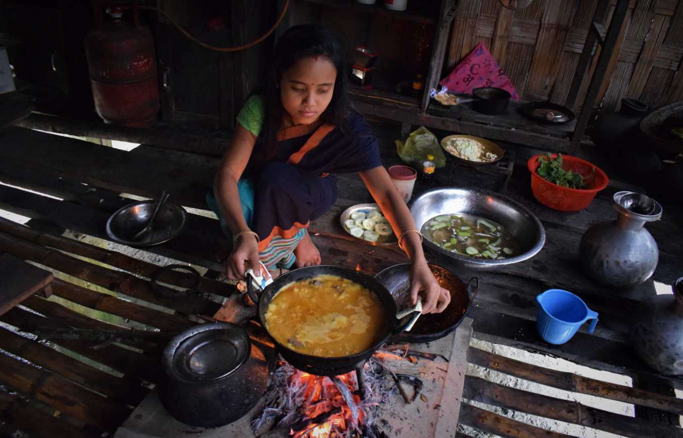 : Mishing is a largest river community of Assam dispersed around various tributaries of River Brahmaputra. They also live in one of the world's largest river island called Majuli. As a riverine tribe, Mising indicates blend of mi ̳man‘ and asi ̳water‘. The Mising consider themselves to be the descendent of the Sun and Moon. On all auspicious occasions, the Sun is referred to Ane Do:nyi- ̳Mother Sun‘ and the Moon who they call Abu Po:lo ̳Father Moon‘ are worshiped. People of Assam referred to Mishing as Miri. According to E. A. Gait, the word Miri means middle man in Assamese words. They acted as a channel of communication between the people of Assam and Abors of Arunachal Pradesh. Ferries and boats are the only lifeline which connects people to the mainland. Women are rare travellers in the ferry as men dominates the passenger ratio. Women in the boat are seen either with a new born baby, visiting her family or to check ailments to nearby hospitals in mainland. With half the male population outside the island for work or better education, these women spends most of the time weaving, tending farms, cooking or battling flood during monsoon season. Climate related disasters with women in rural areas often go unrecorded while they are directly related to accessing natural resources like water and forest for their daily consumption. Looking at the vastness of the River Brahmaputra, a Mishing woman is seen looking at the river from the ferry as though the river is the only companion and her gold earring, the only wealth. The narratives around women and their relationship with river often goes through many layers.